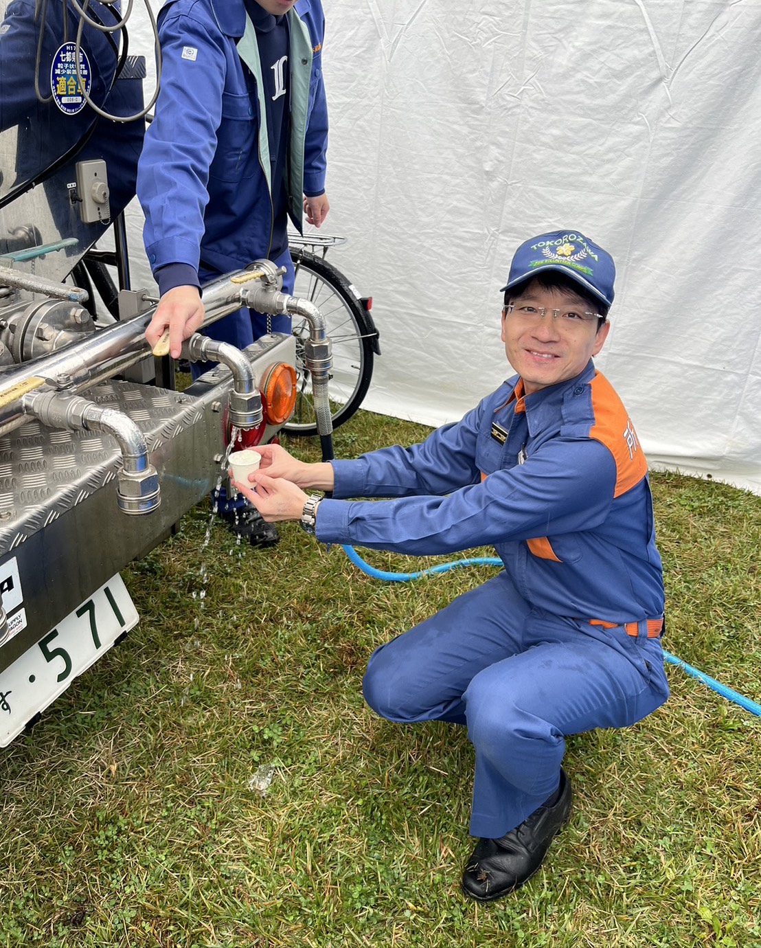 上下水道局のブースでは能登の震災に駆けつけた所沢市の給水車が展示されており、給水車からお水を試飲させていただきました。