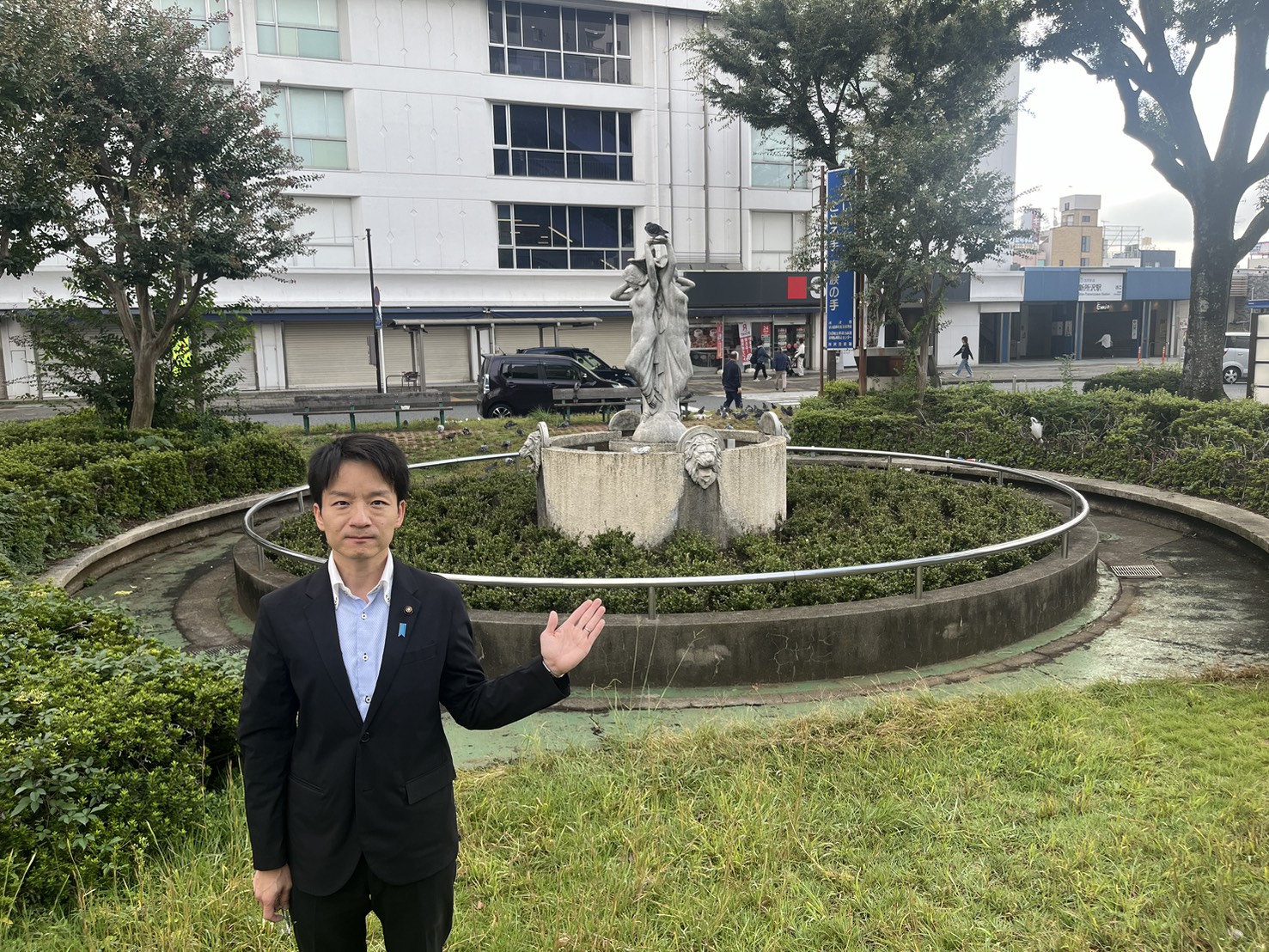 昨年夏に噴水機能が壊れ、技術的、予算的に大規模修繕は困難とされた以降も「女神像(喜びの像)」の存続や、憩いの広場として守っていくことを、自治会・町内会はじめ街の皆さんや行政と相談し合い、市議会の一般質問で要請してきました。
