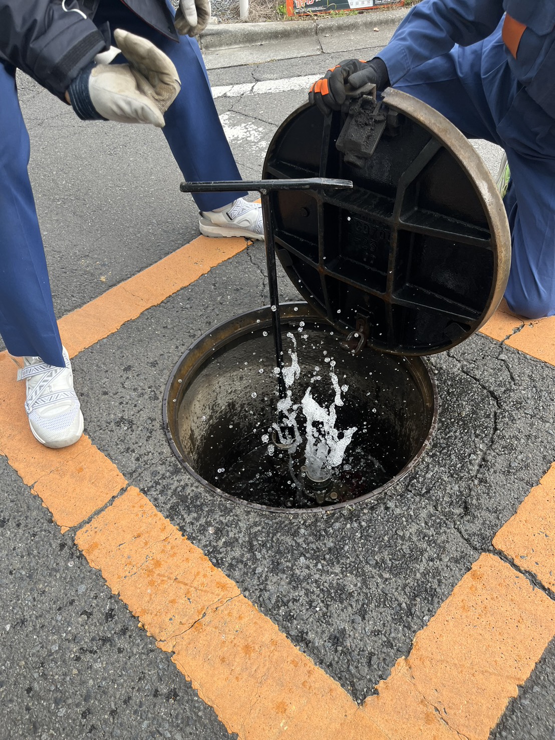 水利点検は、各地域の消防水利(消火栓や防火水槽)が安全に作動するか実際にチェックして回るものです。