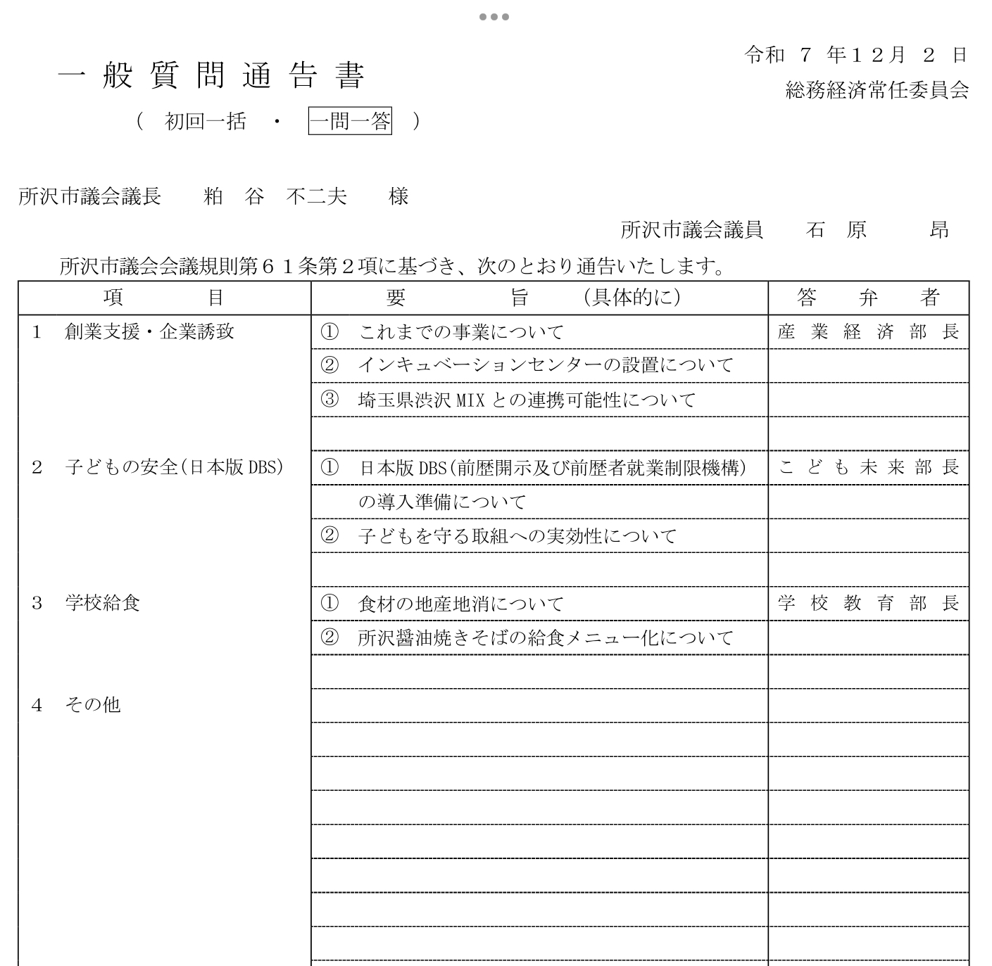 今回の一般質問は、