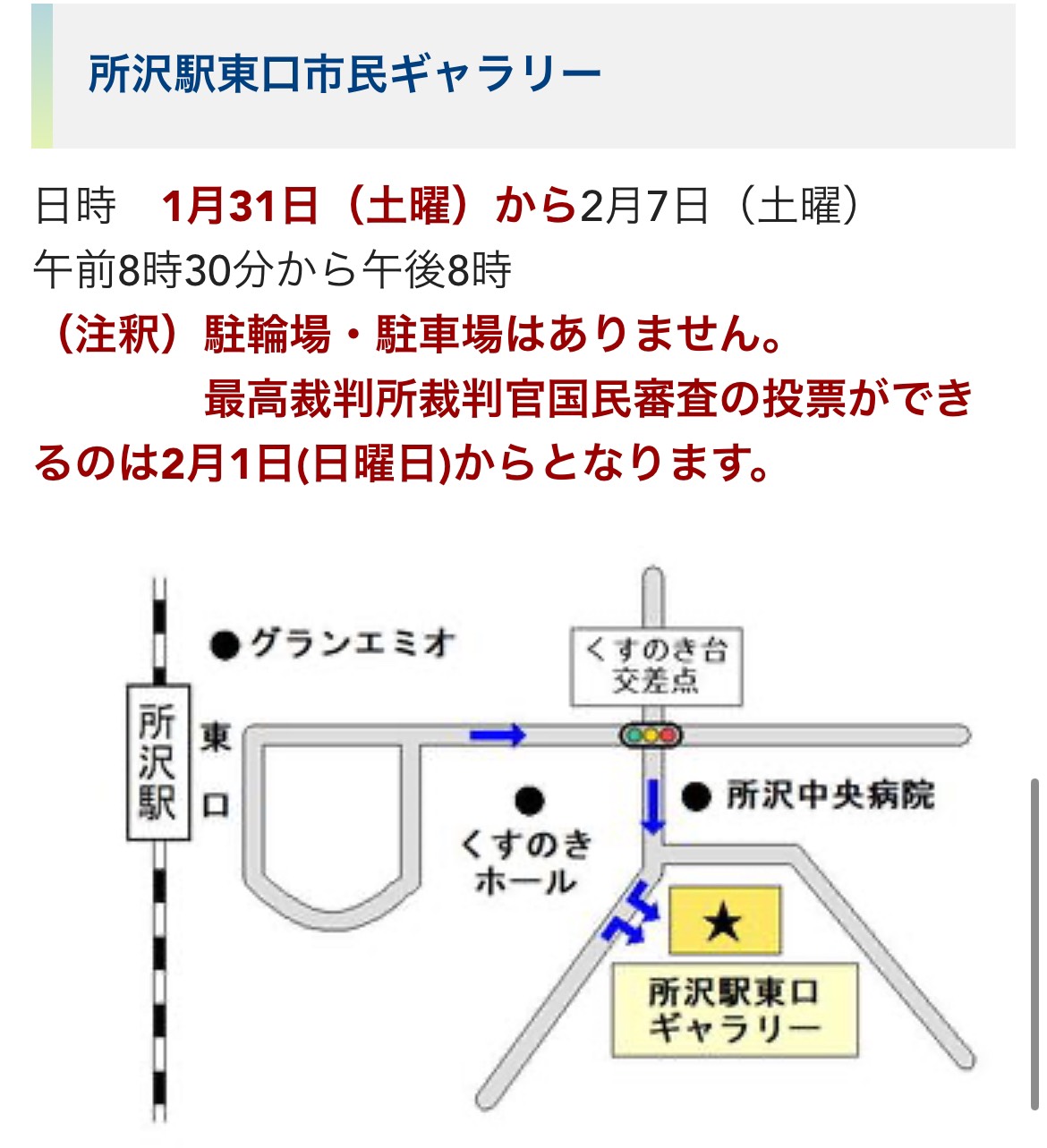 所沢市が設置している期日前投票所は、市役所1階、所沢駅東口市民ギャラリー、三ヶ島まちづくりセンター、柳瀬まちづくりセンターの4箇所です。