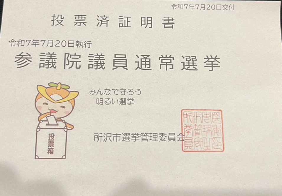 投票を終えたらぜひ、投票済証明書を交付してもらうのがオススメです。