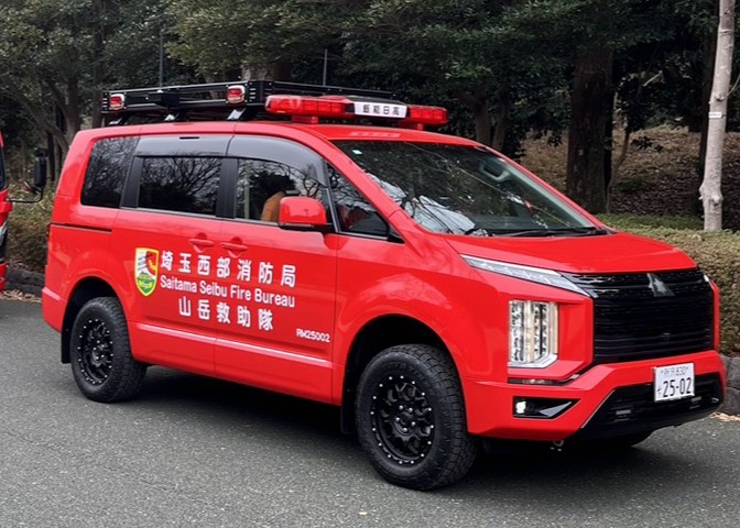 そして年明けの出初式でお披露目となった山岳救助対応車(三菱:デリカ)も今年1月から配備され、飯能などの山岳地帯の火災や救助事案などに備えています。